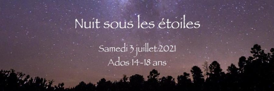 Nous organisons une nuit sous les étoiles à Folgensbourg pour les ados de 14 à 18 ans le samedi 3 juillet 2021. Au programme, petite marche d'approche, soirée grillade, initiation à l'astronomie avec les As du Temps Libre, jeux de rôles et petit-déj le lendemain. Inscription obligatoir...